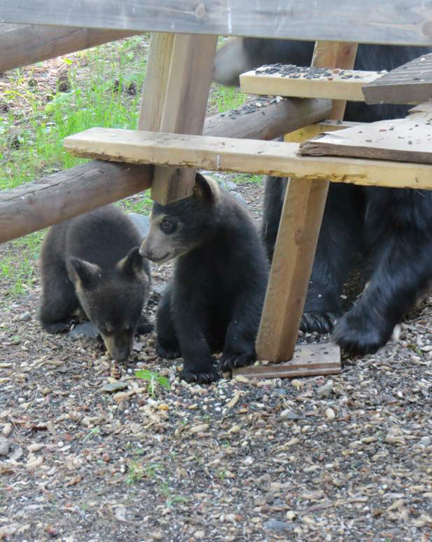 One of the community feeders sent the pictures of Lily and family. Wonderful to see. Amazing how much one of the cubs looks like Lily used to look. I wonder if Lily hooked up with the same father she had to make a lookalike cub. I wonder if this version is a male or female. I hope it’s a male so we can still tell them apart in a few years when the cub is as big as Lily is.