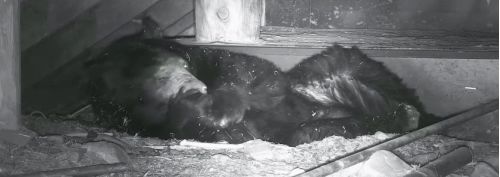 Shortly before 3 PM today, we captured a 10:11-minute video of Spanky nibbling at the foot pad on his right front paw https://www.youtube.com/watch?v=X8_M7ke2fvU. In the last minute of the video, Spanky hits pay dirt. He latches onto a bit of the foot pad and pulls. Suddenly, it pulls free, followed by chewing on what he pulled off his foot. In the spring, one of the things we will look for in his feces will be sections of his foot pads—as we have found in the feces of other bears in dens. When I wrote up what I had seen, I could find no references to it in modern scientific literature. The only references available regarding my ‘discovery’ were in the very old literature on Native American observations of black bears. They had already seen it all.