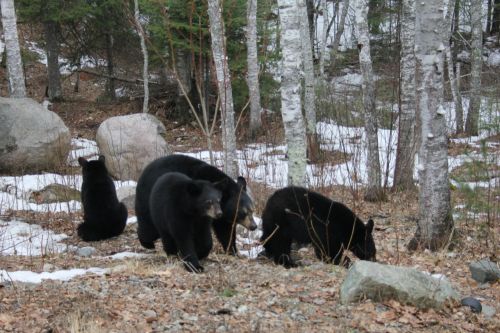 Carolyn and yearlingsWith little snow and April-like temperatures, bears are roaming earlier that I would have expected. Spanky is not the only bear up and about.