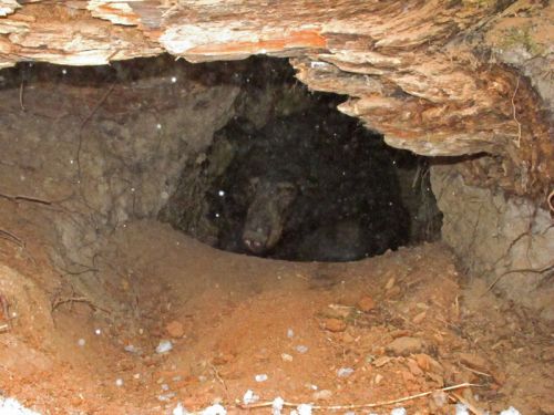 That brought back memories of the ingenuity bears have shown in both the kinds of dens they use and the kinds of bedding in those dens, but somehow they find ways get through cold Minnesota winters. The dens varied from burrows to rock crevices, hollow trees, spaces in slash piles, and dens out in the open. Most of the latter were next to wind breaks such as the root masses of fallen trees. To make insulating beds, they usually raked leaves, grass, moss, and other ground vegetation into the dens and arranged it to their liking. When those materials could not be found, they bit small branches off trees, stripped bark off cedar trees, or chewed rotten wood into chips as we saw Lily do.