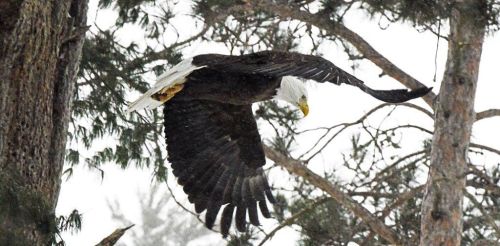 Bald eagle flyingOn this "Twosday" 2/22/22, we have two topics. I’ve heard so much about Hank the Tank lately that I had to call my friend Ann Bryant who heads The Bear League around Lake Tahoe where Hank lives. Ann is one of my heroes for all she does for bears. She is prominently featured in the North American Bear Center for doing what many others would not. If a bear is not welcome denning under a house, little Ann shoos it out. We have worked together, co-authored a scientific paper together, and I serve on her advisory board for The Bear League. Hank the Tank developed a bad habit. He is entering people’s houses now in the middle of winter to find food. How does the public feel about that? She said she has received about 300 calls with all but one wanting Hank saved. She said the public loves him, and the police feel the same way. Ann and her Bear League team have lined up 9 wildlife refuge facilities willing to take Hank whenever California wildlife officials give the okay. One of the refuges said it would even build a big, beautiful refuge enclosure especially for him. Hank’s bad habit of going into people’s houses is something we don’t see here in Eagles Nest Township where people have fed bears since 1961. Hank showed that there can be an exception to everything. I don’t know the whole story behind Hank’s behavior, but he will be the rare example used by people who claim such behavior is what happens if a bear loses fear of people. It is what the Minnesota DNR claimed in 2014 would happen for years into the future with bears that lost their fear of people here in Eagles Nest, but it is has not.