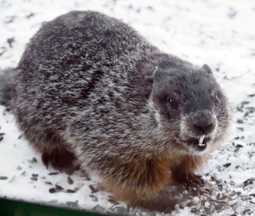 WoodchuckOut the window at the WRI, a woodchuck made its first appearance up on the second floor deck, which made me snap two quick ID pictures that look entirely different in the lights just 8 feet and seconds apart. The right ear and the spots of sparse fur look familiar, but I can’t remember whether it is a male or a female. I’ll have to look it up.