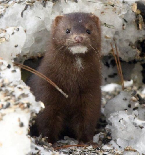 Mink SpotSpot the Mink was happy today with a new treat that is better than bologna. Chicken fat. Spot gives me a good feeling because he seems to accept me and go about his work coming near me or whatever without concern. If I’m offering something good to eat, he’ll readily come. Otherwise, he has his own agenda. One of those is using his old labyrinth of tunnels under the snow.