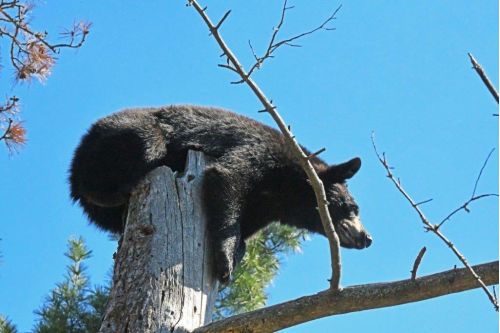 Blacks bears have two layers of fur. The first layer is an undercoat that is short and thick. The outer layer is made up of guard hairs which are long and thin. This coat keeps most biting and stinging insects at bay, by not allowing them to get to the skin. However, some parts of the bear such as; the belly, muzzle, nose, and face have significantly less fur. They are not so well protected in this areas. In order to ward of insects, black bears rub cedar sap on themselves. Cedar trees, and more specifically cedar sap, repels insects. Here at the North American Bear Center, we give our bears cedar wood chip piles so they can practice this behavior in captivity. As you can clearly see in the videos below, all our bears seem to thoroughly enjoy rolling around in the wood chips.