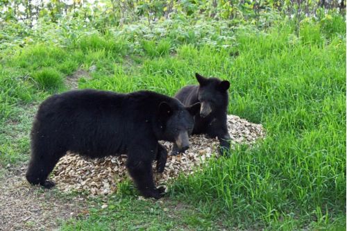 Are Lucy and her yearlings going through family breakup? I know breakup happens in many ways, but here is the confusion. Lucy was here alone this morning. I thought breakup had happened. But then I got a call that Lucy was chasing Desi and Arnie up trees. Then I got a call that a Lucy lookalike was in that area with two yearlings but all was peaceful among them this morning. Could things have changed quickly with them. To confuse me, Lucy just arrived with her yearlings and everything seems copacetic. The picture is of Lucy and Desi peacefully exploring the cedar chip pile we put out to see what they do. Everyone else is confused too, but everyone will sort it out.