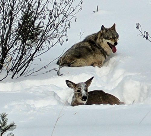 On a lighter note, my friend Dick Larson took this picture only about 11 miles from here this past winter (February 6, 2022) from a road. I don’t understand it. How could it be? This area has never seemed to be the place where the wolf will lie down with the deer unless one is eating the other. But they say there are exceptions to just about everything. Two wild animals.