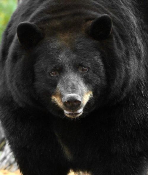 The next question is about RC who is Shadow’s oldest surviving descendent at 23. Will she have cubs this winter? She was supposed to have cubs last winter but didn’t. We thought maybe it was because she had mated with Spanky, but we don’t really know at what age black bears stop having cubs. We know of a couple that had their last litters at 26. Shadow set the known record at 28. But how many stop earlier than that? Will she have cubs this winter at 24? What makes us wonder is that pregnant females are the earliest to den. Her mother Shadow sometimes denned up for the winter in the last week of August when she was pregnant. RC showed up today which seems counter to being expectant. I couldn’t help take a picture of her today because the light was right to show her eyes nicely, and she was standing there quietly looking at me. Click. She was also showing the distinctive white check mark on the right side of her chest that gives her the name RC that stands for Right Check. If she has cubs in the spring, we’ll learn that some pregnant mothers den in October, or maybe that some mothers stop having cubs at 21 even though she seemed to be in the height of her productive life with a litter of four.