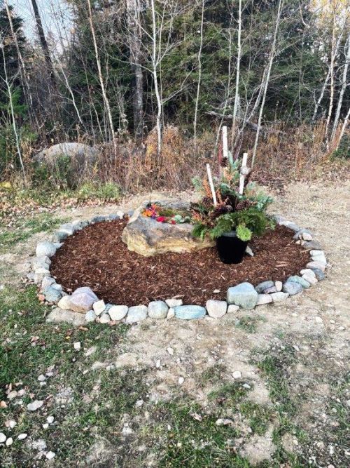 What you see is a start toward special Ted’s grave. Local people have stopped by to adorn his site with roses and other flowers. Still to come is an engraved stone much like Honey’s. Thank you again for all of your condolences and expressions of grief and love for Ted. I feel so lucky to be connected with people whose hearts for bears and nature bring us all together.
