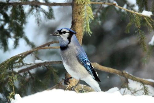 Blue jays are still here, but only half as many as earlier. They are a bit erratic about migrating. Some do and some don’t, with no explanation as to what makes the difference for individuals from year to year. So I don’t know if these will stay or not. This jay sat in good light and glowed bright blue even though the pigment in their blue feathers is melanin, which is brown. From what I’ve read, tiny cells on the surface of the feather barbs contain air and keratin that somehow absorb all the colors of the wavelength except blue.