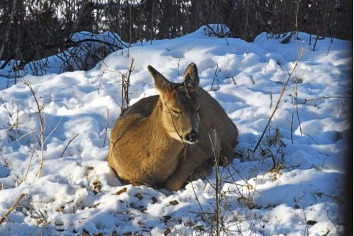 A deer resting peacefully in the yard today set the tone for tomorrow, and a hungry blue jay coming in for food made me think of tomorrow’s dinner.