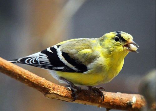 Pine siskin maleSpeaking of spring, out the window at the WRI, a goldfinch (Spinus tristis) let me see how he was exchanging his tan winter feathers for bright yellow on his body and black on his crown for mating season. And then, his close cousin, the pine siskin (Spinus pinus), gave me the best view I’ve ever gotten of a male in full mating plumage—perhaps the most beautiful pine siskin I’ve ever seen. A good day.