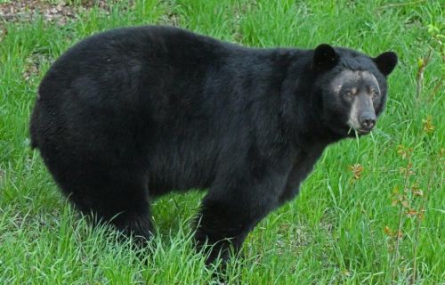 Among the bears appearing lately is 5-year-old Adam who is back to eating grass now that some of the large-leaved aster leaves are getting past the edible stage. He is rapidly growing back the hair he lost overwinter to mange and will probably look sleek and handsome by the time the courses start in July.