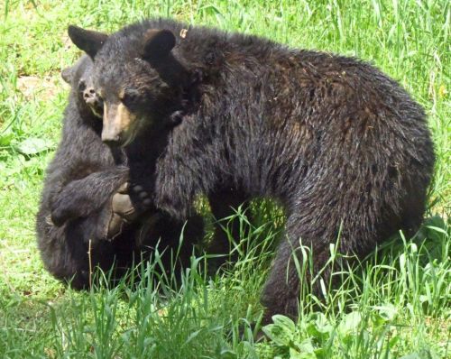 Their play included the larger one (117 pounds) lying on his back while Paul (88 pounds) got on him and played like little cub Lucky used to get on big Ted.