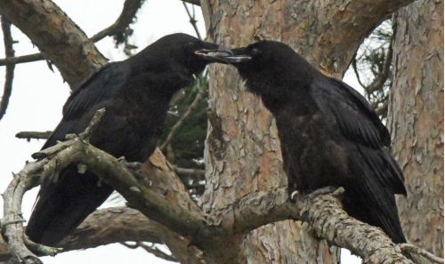 In the red pine across the yard, a pair of ravens sat touching beaks back and forth for several minutes this morning.