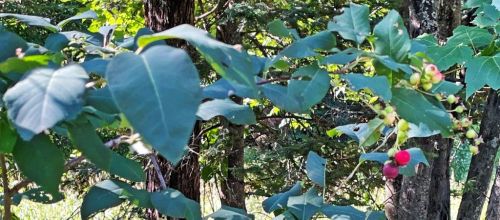 WRI’s Mike Johnson saw a similar example of that preference with a red squirrel that repeatedly climbed the tiny branches of this small juneberry tree, grabbed a berry, and hurried down to the ground where it could hold it and eat it. When the squirrel moved on, Mike took a photo of the remaining berries. Only two ripe red berries remained in the single remaining cluster (picture) in this tree only a few feet from a pile of diversionary nuts that are hot items in other years, showing the same preference as we are seeing with the bears.