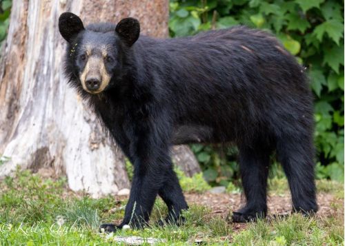 Calls are coming in. Bears are showing up in the area. A call yesterday was to invite us to bring the Black Bear Field Study Course participants over to see Andrea (3-year-old daughter of Jewel) and her three cubs (male Cupcake, male Twinkie, and female Snowball). Course participant Kelly Ogilvie got a couple nice pictures of Andrea, but her cubs were high up in a white pine back in the woods where we didn’t want to bother them.