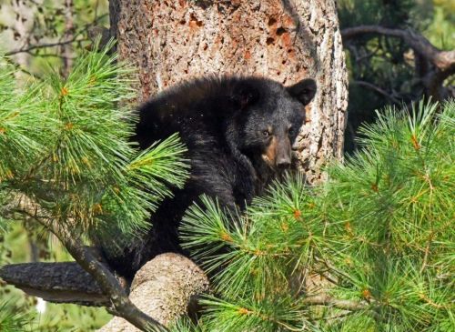 The morning started with one of Olive’s cubs looking good in the sun in the tree it spent the night in again. It’s hard to tell if it is her female cub with a blaze on her chest or the male without the blaze. I’m leaning toward it being the male.