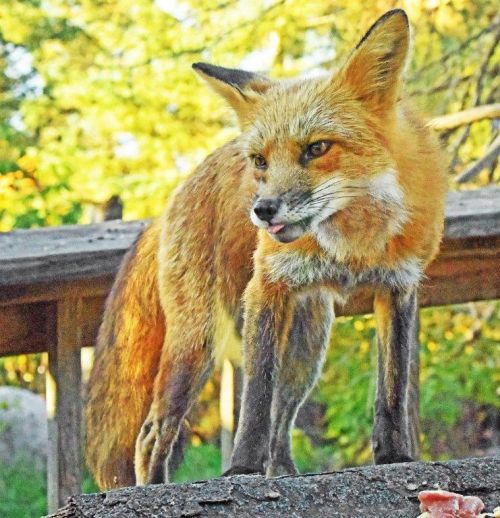 The red fox that visits here also visits a diversionary feeding site a half mile away where he (we’re told he is a male) should be relatively safe traveling back and forth.