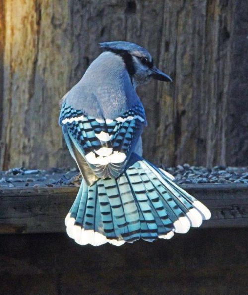 Migrating birds have moved through. Blue jays are still here adding their color, especially this one that flared its tail to dominate a competitor for sunflower seed hearts. A red squirrel in its winter coat showed even richer color as the sun neared the horizon.
