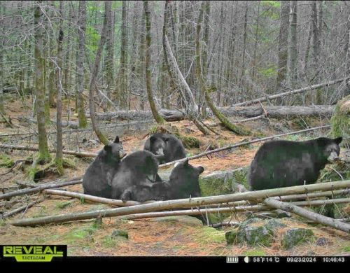 With no sign of bear hunters, days are more relaxing. Lily and her four cubs are frequenting a safely located den with her four big cubs. We’ll see if she settles there or finds a better one for the big family. She’s only seen on a trail cam. No person present. Exciting to catch her on the camera. Crossing our fingers that she’ll use the den.