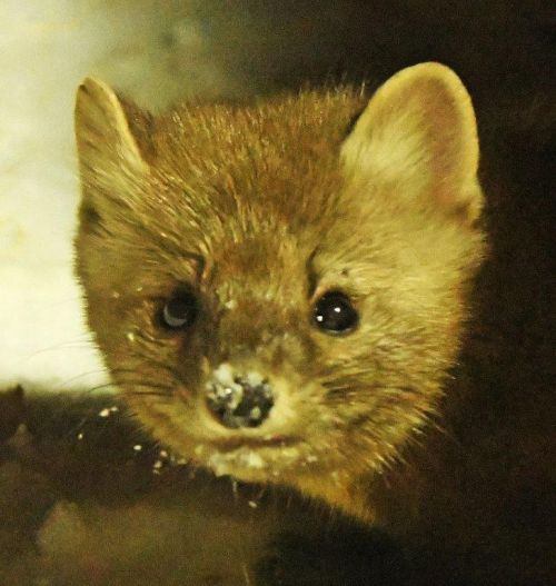 Excitement started before it was light enough for anything more than an ID picture. A pine marten stopped by for the first time in a loongg time. From its small size, it had to be a female. I hope she was happy with the peanuts she was eating back in a shadow until she stuck her head out in the light for a quick click. I hope she comes again.