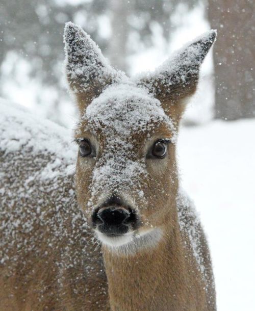 Yesterday, the eagle twice swooped by grabbing his treat too quickly for me to respond. Today, he flew over, making me think he wanted more, but it was a false alarm. He landed in a tree, was quickly joined by a pair of ravens and just sat there calmly for two hours as it began to snow—and then left even though his food was out and ready.