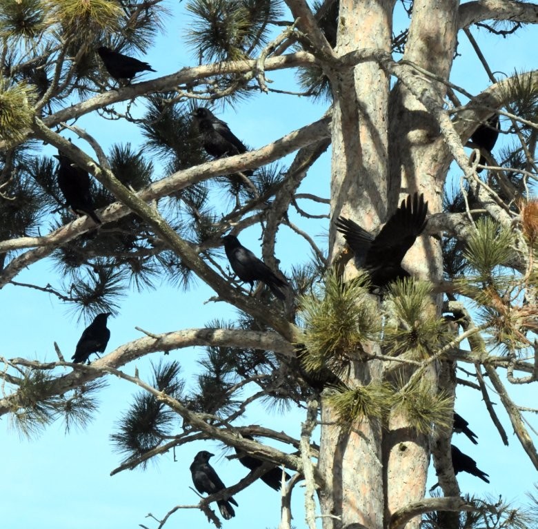 Crows gather in tree