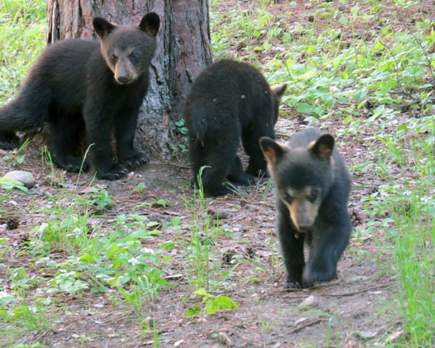 One of the community feeders sent the pictures of Lily and family. Wonderful to see. Amazing how much one of the cubs looks like Lily used to look. I wonder if Lily hooked up with the same father she had to make a lookalike cub. I wonder if this version is a male or female. I hope it’s a male so we can still tell them apart in a few years when the cub is as big as Lily is.
