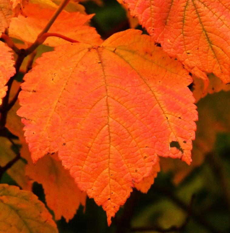Color has come on fast in the last couple days with maples as the stars so far. Red maples have smooth leaves and can be red, pink, or yellow and are consistently the same color each year with some variation in intensity. Mountain maples have little mountains and valleys as texture on leaves that are more orange and yellow. Maple leaves will fall in early October while other trees are reaching their peaks of color.