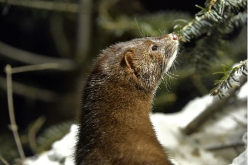 Mink GuitarYesterday, the day started with the mink named Guitar making many visits with the temperature far below zero. He was hungry and readily took pieces of bologna confidently and gently from my hand. He knows the program and knows my voice as I say, “Come mink.” He stashed a lot of the pieces up in his third floor lair, so I went up to see and listen to some of that action. On the way back to get another piece, he spotted me inside the full length door window. Instead of running away, he stopped and looked in the window, first at my feet and then up to my face. I was standing very still so he wouldn’t notice me but I couldn’t keep any secrets from him. Somehow, the good feeling of being accepted and trusted by a wild animal lasts all day.