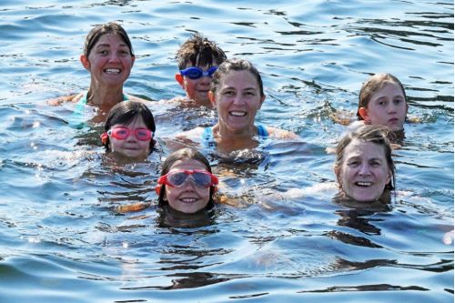 The high winds of last evening’s thunderstorm flattened Ely’s Blueberry Festival so badly that they had to call it off for this year. Bad for all, but today was so sunny and warm that we had to make it family day. We started by meeting bears, including Jack and the bear that was named after my daughter Colleen some 18 years ago. Then we went out on the pontoon boat where a loon couple seemed to be having a nice time together in the water. Fifteen minutes later, everyone except me jumped into the water. Left to right, front to back are Gabrielle (10), Donna (72), Kaiya (8), Kelly (40), Micah (9), Colleen (39), and Heinrik (11).