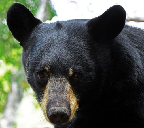 On this Friday the 13th , it was actually a nice blue sky day and bear visits. It was nice to see Chloe and her growing cubs. Three-year-old Chloe was defensive as usual. When a bear came too close, she gave him a look and went after him, vocalizing that he was in trouble. Chloe’s cubs leaped up a nearby white pine with Lincoln racing high up against the blue sky and Charlie Brown staying lower.