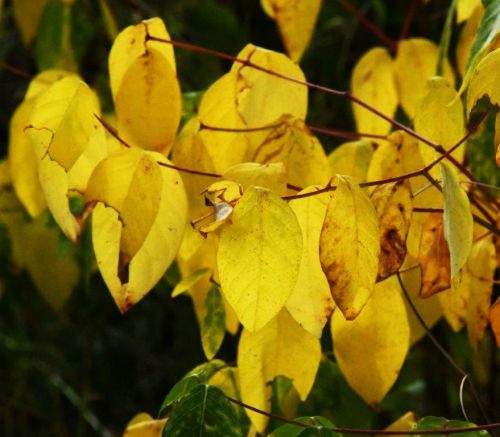 I never before saw a nice pond near here drying up to the point that its floating lily pads were lying on the exposed bottom surrounded by the dried and empty shells of snails. I don’t know if the early yellow color in Spreading Dogbane (Apocynum androsaemifolium) leaves is due to the drought, but it is a surprise.
