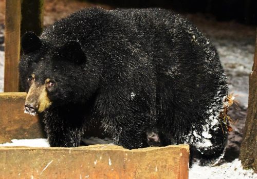 We are convinced Dexter has gone to hibernate. On November 14, he left at 11:30 PM in a different direction than he had been leaving, and he hasn’t been seen since. The picture of him walking onto the scale the night before (11-13-2021) shows this yearling with a good coat and weight (201 pounds) and more than prepared for winter. We’re hoping to see him early in spring and maybe learn how much weight he lost overwinter.