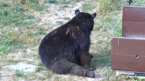This is very vigorous digging! I think Tasha is hoping she can hang on to this den without Holly taking it over. She is showing confidence in that and working away big time to make it like she wants. We’re coming up on the earliest date we’ve seen a wild bear make at den. That was June on July 19 in 2004. It is 12 minutes and 40 seconds caught by "Pooch Pal". https://www.youtube.com/watch?v=_-b1XtR1TWM