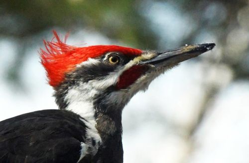Pine siskinAt the WRI, the story for tomorrow, if a bear doesn’t trump it, is about big birds in action. Through the morning, it was 40 crows, the raven, three eagles, and a turkey vulture interacting. A little misdeed today was a pileated woodpecker who forgot to comb his red crown feathers. This afternoon on this beautiful, warm (70°F) blue-sky day included the moment when the last snow melted off the beaver lodge.