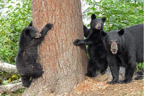 A quick favorite after twelve years of not seeing or recognizing her is Jani, Braveheart’s daughter of 2011. When we first saw her here 2-3 weeks ago, she remembered the program and readily accepted food from Lorie’s hand. Her two small cubs, Jaci (female) and Jethro (male) also have trusting personalities. A couple days ago, they posed for a family ID picture with Jaci on the left, Jethro in the middle, and Jani to the right at the base of the cubs’ favorite white pine with their food pile at the base. It’s a food pile that disappears fast with the help of a dozen mallards that fly in or follow their duck path up from the lake a couple times a day. Also sharing the food is a flock of a couple hundred common grackles that immediately leave if the two juvenile sharp-shinned hawks are seen. In that case, the sharp-shins turn to blue jays that take refuge in the dense branches of a dead balsam fir tree that I’ve let stand for that purpose some 25 years. With the hundreds of chases by sharp-shinned hawks I’ve seen during their spring and fall migrations, I can’t remember seeing a single capture.