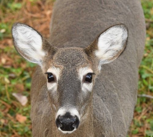 Not to be forgotten, a deer looked up at me with beseeching eyes (top) that made me sprinkle peanuts to her from the second floor deck as her fawns heard what I was doing and came out of the bushes to join her.